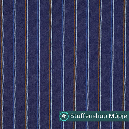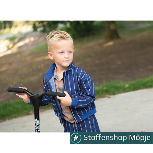Toffe gestreepte jeans, wij zijn helemaal fan, want in de Poppy meets Pommé nummer 26 staat een tof patroon voor een bomberjasje en een korte broek voor met deze stof, echt supertof! Verder leent deze stof zich perfect voor stoere kleding en decoratie.