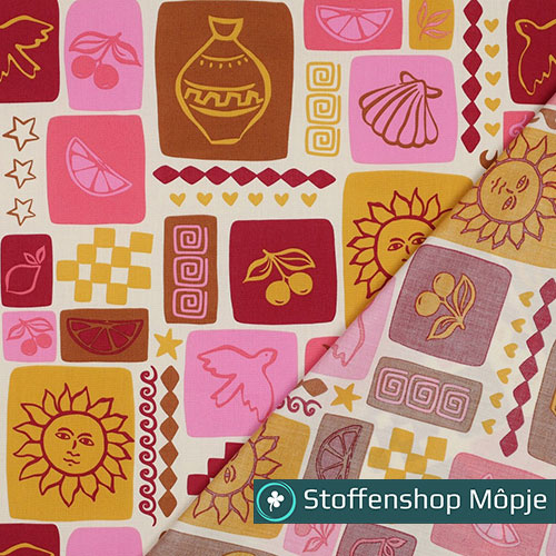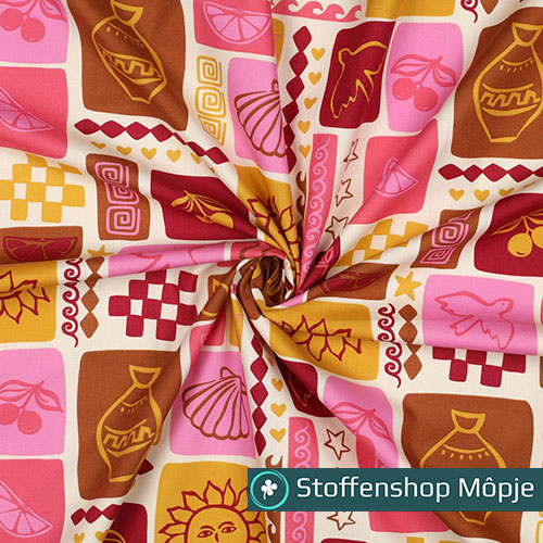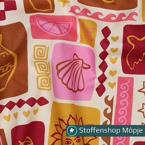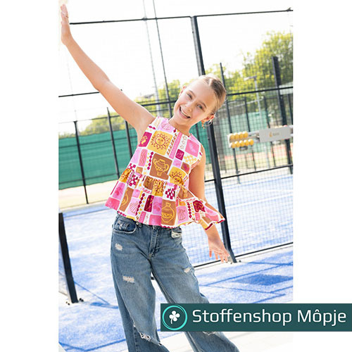Mooie poplin in een hip patchwork design. Zeer geschikt voor de patronen uit nummer 26 van het patroonblad Poppy meets Pommé.